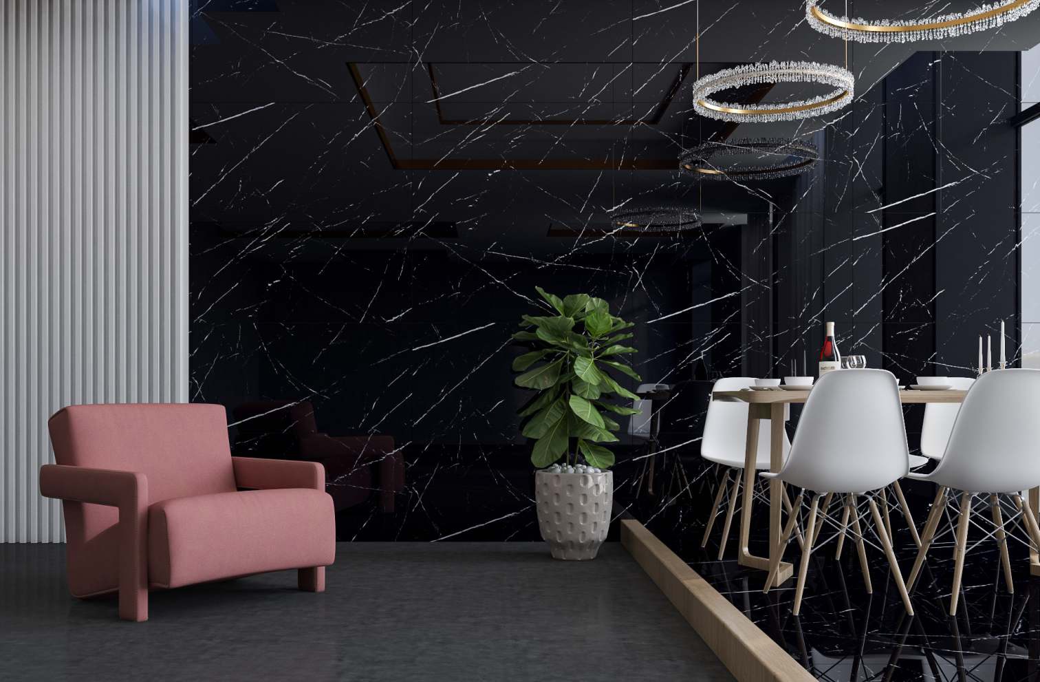 Glaze Vitrified Tiles ( GVT ) or Porcelain Tile is widely use nowadays as Floor tile as well as Wall Tiles. Most Popular size is 60x120 cm which can be used with other matching tile to give your space a lavish look. The most iconic Dark Color collection is Super High glossy tile that reflects elegance of Architecture !